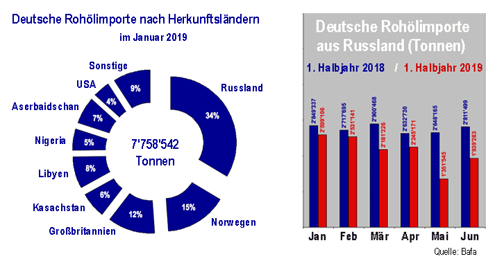 Über die Druschba wickelt Russland den Großteil seiner Rohölexporte ab. Die Pipeline hat drei Hauptstränge, die von Weißrussland aus nach Westen über Polen nach Deutschland, nach Nordwesten ins Baltikum und nach Südwesten durch die Ukraine nach Ungarn sowie nach der Slowakei und Tschechien führen. Der westliche Strang versorgt deutsche Abnehmer mit jährlich rund 20 Millionen Tonnen Rohöl. Größte Kunden sind die ostdeutschen Raffinerien in Schwedt und in Leuna, die Shell bzw. Total gehören.