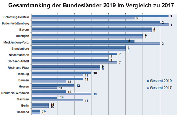 Schleswig-Holstein und Baden-Württemberg sind die führenden Bundesländer im Bereich Erneuerbarer Energien. Das ist das Ergebnis des Bundesländervergleichs, den das Deutsche Institut für Wirtschaftsforschung (DIW Berlin) und das Zentrum für Sonnenenergie- und Wasserstoff-Forschung Baden-Württemberg (ZSW) im Auftrag von und in Kooperation mit der Agentur für Erneuerbare Energien (AEE) zum sechsten Mal erstellt haben. Die am 27. November veröffentlichte Analyse bewertet auf Basis von 61 Indikatoren die politischen Anstrengungen und Erfolge der Länder bei der Nutzung von Erneuerbaren Energien sowie beim damit verbundenen wirtschaftlich-technischen Wandel.