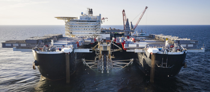 Arbeitsschiff, das die Allseas Group zur Verlegung von Nord Stream 2