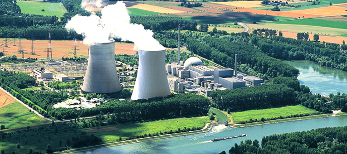 Dieses Foto entstand vor mehr als zehn Jahren, als noch beide Blöcke des Kernkraftwerks Philippsburg in Betrieb waren. Im Vordergrund der Rhein. Rechts sieht man vorn den Siedewasserreaktor und dahinter den Druckwasserreaktor (mit Kuppel). Links die dazugehörigen Kühltürme. |