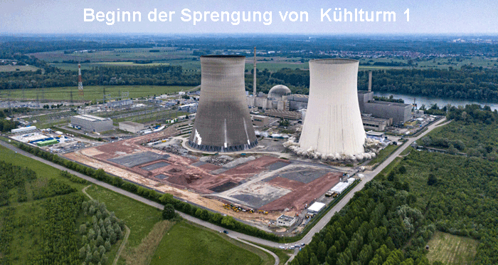 Die Energie Baden-Württemberg hat am 14. Mai die beiden Kühltürme des Kernkraftwerks Philippsburg gesprengt, das zum Jahresende 2019 komplett stillgelegt wurde (191208). Sie hatte die Sprengung Anfang Mai für diesen oder den folgenden Tag angekündigt. Angesichts der Coronavirus-Pandemie nannte sie absichtlich keinen genaueren Zeitpunkt, um der Ansteckungsgefahr durch eine große Ansammlung von Schaulustigen vorzubeugen. Trotzdem fanden sich um sechs Uhr morgens außerhalb des abgesperrten Bereichs zahlreiche Zuschauer ein. Sie erlebten eine mustergültige Sprengung, bei der die 150 Meter hohen Türme in weniger als einer Minute so in sich zusammensackten, dass sie nur noch kreisrunde Trümmerhaufen bildeten.