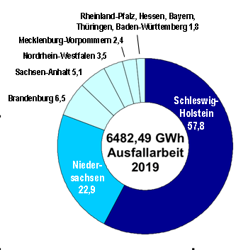 Der per "Einspeisemanagement" (EinsMan) abgeregelte EEG-Strom stammt zu vier Fünfteln aus Windkraftanlagen in Schleswig-Holstein (57,8 Prozent) und Niedersachsen (22,9 Prozent). Vom Rest entfallen auf Brandenburg, Sachsen-Anhalt, Nordrhein-Westfalen und Mecklenburg-Vorpommern jeweils einstellige Prozentanteile. Dagegen sind EEG-Anlagen in Rheinland-Pfalz, Hessen, Bayern, Thüringen und Baden-Württemberg insgesamt mit nur 1,8 Prozent betroffen. Überhaupt keine Rolle spielt die erzwungene Abschaltung von EEG-Strom in Sachsen, Saarland, Hamburg, Berlin und Bremen (siehe Grafik).