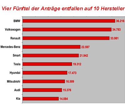 Von den insgesamt 284.482 "Umweltbonus"-Anträgen, die bis September 2020 beim Bundesamt für Wirtschaft und Ausfuhrkontrollle (BAFA) gestellt wurden, profitierten zu 82 Prozent die oben genannten Hersteller. |
