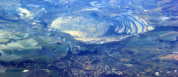 mit dem dazugehörigen Braunkohle-Großkraftwerk (links). Im