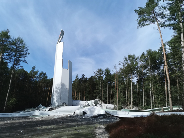 Von der Windkraftanlage bei Haltern blieb nur ein kurzes Reststück stehen. Die übrigen Teile des 164 Meter hohen Turms knickten samt Gondel und Rotor plötzlich ab und stürzten zu Boden. Wenige Stunden später hätte die offizielle Inbetriebnahme nachgeholt werden sollen. So kam aber niemand zu Schaden. Foto: RAG Montan Immobilien