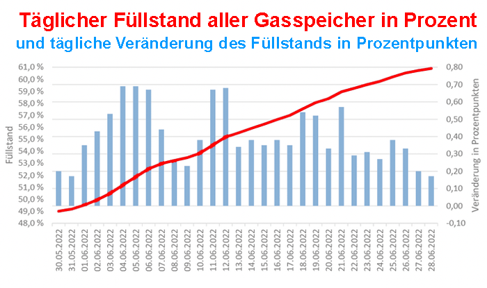 die deutschen Gassspeicher die vorgeschriebenen Füllstände von