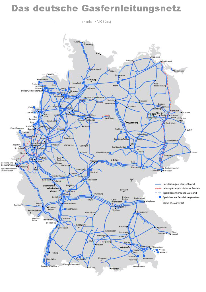 Das Hochdruckleitungssystem im deutschlandweiten Gas-Marktgebiet "Trading Hub Europe" verfügt über eine Gesamtlänge von rund 40.000 Kilometer und verbindet mehr als 700 nachgelagerte Netze. Es wird derzeit von insgesamt 16 Unternehmen betrieben, von denen sich zwölf in dem seit 2012 bestehenden Dachverband FNB-Gas zusammengeschlossen haben (alphabetische Reihenfolge):