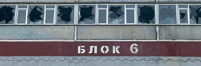 Durch den Krieg zerstörte Fensterscheiben an Block 6 des Kernkraftwerks Saporischschja Foto: IAEA
