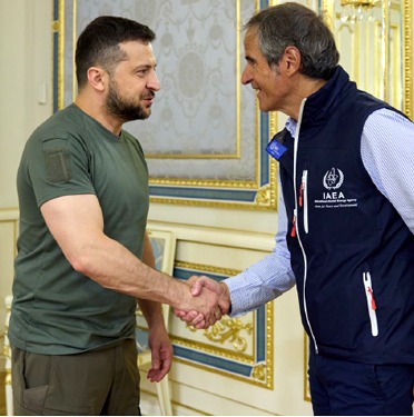 Vor der Weiterfahrt zum KKW Saporischschja traf IAEA-Generaldirektor Grossi in Kiew den ukrainischen Präsidenten Zelensky. Foto: IAEA
