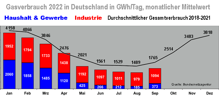 Der Rückgang der kurzfristigen Großhandelspreise bedeutet allerdings nicht, dass auf die Verbraucher keine weiteren Preiserhöhungen zukommen. Diese stehen vielmehr erst bevor. So hat die Energie Baden-Württemberg (EnBW) am 11. Oktober eine weitere Preiserhöhung mitgeteilt: Ab 1. Dezember steigt der Gaspreis in der Grundversorgung gleich um 38 Prozent, obwohl er erst zum 1. Juli um 34,8 Prozent angehoben wurde. Die jährliche Gasrechnung erhöhe sich dadurch für einen Musterhaushalt mit einem Jahresverbrauch von 20.000 Kilowattstunden auf 2.805 Euro, hieß es in der Pressemitmitteilung. Sie liege damit aber noch immer unterhalb des aktuellen Durchschnittspreises von 3.000 Euro. Die Tarife außerhalb der Grundversorgung würden sich "in ähnlicher Höhe ändern".