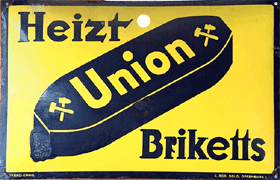 In memoriam: Die UNION-Briketts(siehe oben) Mit dem Brikettieren von Kohle wurde in der zweiten Hälfte des 19. Jahrhunderts begonnen, als die Eisenbahnen und Dampfschiffe allmählich die Befeuerung der Heizkessel von Koks auf Steinkohle umstellten. Als Bindemittel für die zermahlene Feinkohle diente der Teer, der bei der Verkokung der Steinkohle als Nebenprodukt anfiel (ähnlich wie das Leuchtgas, das aber anfangs meistens kein Nebenprodukt, sondern der Hauptzweck der Verkokung war). Gegen Ende des Jahrhunders erlangte auch die Brikettierung von Braunkohle zunehmend Bedeutung. Dieser fossile Brennstoff war sozusagen eine festere Art von Torf. Hier konnte auf ein Bindemittel verzichtet werden. Er musste aber aufwendig getrocknet werden, bevor er unter hohem Druck zu Briketts gepresst werden konnte. Nachdem die anfangs sehr mühsame manuelle Herstellung von solchen "Klütten" durch industrielle Verfahren verbessert und ersetzt werden konnte, wurden Braunkohle-Briketts um die Wende zum 19. Jahrhundert neben Steinkohle-Briketts (ihrer Form wegen auch "Eierkohlen" genannt) zum wichtigsten Brennstoff für die Beheizung von Einzelöfen in Wohnungen und anderen Räumen. Mit der "Exter-Presse" begann in Sachsen die industrielle Fertigung