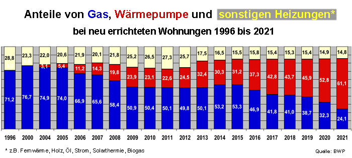 Marke von 50 Prozent, während die Gasheizungen nur noch auf