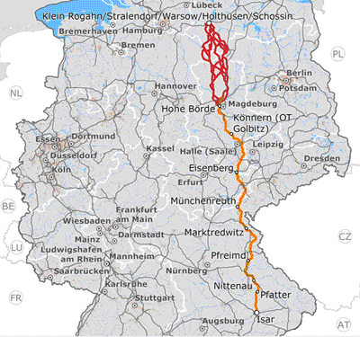 Nach wiederholten Änderungen der Planung sieht das Projekt "SuedOstLink" inzwischen so aus, dass die 539 Kilometer lange HGÜ-Leitung, die den in Sachsen-Anhalt anfallenden Windstrom vom Umspannwerk Wolmirstedt zum Netzknoten Isar in Bayern führt, durch eine zweite Leitung mit der Bezeichnung "SuedOstLink+" ergänzt wird (210103). Diese Erweiterung nach Norden wurde erst im Januar 2021 als Vorhaben Nr. 5a in das Gesetz über den Bundesbedarfsplan aufgenommen. Sie schöpft den in Mecklenburg-Vorpommern anfallenden Windstrom ab und transportiert ihn ebenfalls nach Isar in Bayern, wobei beide Leitungen weitgehend verkabelt werden und ab Wolmirstedt dieselbe Trasse benutzen.