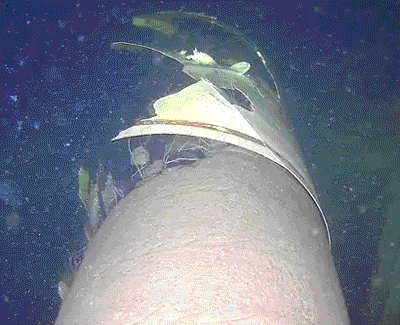 War es nur Fahrlässigkeit, dass der Anker eines chinesischen Frachters den "Balticconnector" beschädigte? Dieses Foto des finnischen Grenzschutzes entstand in etwa sechzig Meter Tiefe. Foto: Rajavartiolaitos