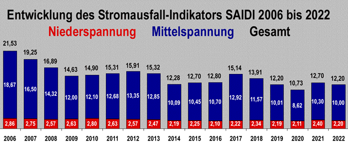 Gemäß § 52 des Energiewirtschaftsgesetzes müssen die Netzbetreiber der Bundesnetzagentur regelmäßig bis 30. April einen Bericht über sämtliche Versorgungsunterbrechungen vorlegen, die es im vergangenen Jahr in ihren Netzen gab. Der daraus ermittelte SAIDI-Wert (System Average Interruption Duration Index) erfaßt allerdings nur ungeplante Unterbrechungen mit einer Dauer von mehr als drei Minuten. Außerdem müssen die Unterbrechungen auf Einwirkungen Dritter, auf Rückwirkungen aus anderen Netzen oder auf andere Störungen im Bereich des Netzbetreibers zurückzuführen sein. Kürzere Ausfälle, geplante Unterbrechungen und Ausfälle aufgrund höherer Gewalt bleiben ebenso außer Betracht wie Spannungs- und Frequenzschwankungen, die ebenfalls die Versorgungsqualität beeinträchtigen können.