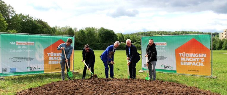 Bisher dürften es vor allem Fördergelder gewesen sein, die Stadtwerke veranlasst haben, ihre Fernwärme-Technik durch Solarthermie zu ergänzen. Seit der Verabschiedung des Wärmeplanungsgesetzes kommt der Druck hinzu, konkreten Anforderungen genügen zu müssen. – Besonders dann, wenn man noch höher gesteckte Ziele verfolgt wie die Stadt Tübingen und ihre Stadtwerke, die erklärtermaßen den Erneuerbaren-Anteil an der Fernwärme bis 2030 nicht nur auf 30, sondern sogar auf 50 Prozent erhöhen wollen. Als weiterer Schritt in dieser Richtung fand am 3. Mai der symbolische erste Spatenstich zur Errichtung des Solarthermieparks "Au" statt, der im Herbst 2025 in Betrieb gehen soll. Mit einer Wärmeleistung von bis zu 7 Megawatt soll er jährlich rund 6.000 Megawattstunden Wärme ins Netz einspeisen. Der Solarthermiepark hat eine Grundfläche von 23.200 Quadratmeter. Die Vakuum-Röhrenkollektoren umfassen eine Fläche von 12.000 Quadratmeter. Ein Wärmespeicher mit einem Fassungsvermögen von 1.250 Kubikmeter ergänzt die Anlage.