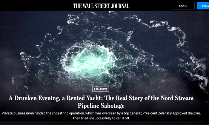 Aus ähnlichen Quellen schöpfte nun das "Wall Street Journal", als es am 14. August einen ziemlich bunten Bericht über "The Real Story of the Nord Stream Pipeline Sabotage" veröffentlichte, der auf Informationen aus ukrainischen Militärkreisen beruhen soll. Demnach kam der Plan zur Sprengung der Ostsee-Pipelines im Mai 2022 zustande, nachdem es der Ukraine gelungen war, den russischen Vormarsch zu stoppen. Es habe sich aber nicht um einen generalstabsmäßig entworfenen Plan gehandelt, sondern eher um eine Art Husarenstreich, dessen Idee bei einem feuchtfröhlichen Beisammensein von patriotisch gesinnten Ukrainern aus dem zivilen und militärischen Bereich entstand und mit einiger Verzögerung schließlich auch umgesetzt wurde.