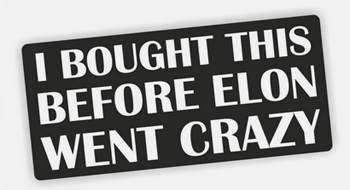 Zugleich verabschieden sich zahlreiche Tesla-Fahrer höchst individuell von Elon Musk, indem sie am Heck ihres Elektroautos einen Aufkleber anbringen: "I bought this before Elon went crazy." Der Aufkleber wird im Internet in mehreren Varianten angeboten.