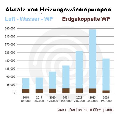 Bundesregierung und Hersteller gingen ursprünglich davon aus, dass ab 2024 jährlich eine halbe Million Heizungs-Wärmepumpen installiert werden. Inzwischen steht fest, dass es keineswegs so kontinuierlich aufwärts geht. Im vergangenen Jahr wurden sogar nur 193.000 Anlagen abgesetzt. Das waren 46 Prozent weniger als im Rekordjahr 2023. Als Hauptgründe für den Rückgang sieht der Branchenverband eine mangelnde Bekanntheit der Heizungsförderung sowie Unsicherheiten rund um die kommunale Wärmeplanung.