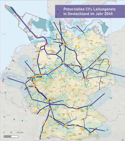 Wie es weiter heißt, haben die genannten Branchen mit unvermeidbaren CO2-Emissionen für das Jahr 2040 einen Transportbedarf von rund 35 Millionen Tonnen CO2 ermittelt. Dieser CO2-Transport benötige eine umfangreiche und in der Regel neue Infrastruktur. Dazu gehören neben den CO2-Abscheideanlagen an den Produktionsstandorten auch Pumpstationen alle 100 bis 150 Kilometer entlang der Leitungen, CO2-Terminals in Hafennähe sowie Transportschiffe und Injektionsplattformen. Nicht zuletzt bräuchte es insgesamt etwa 10.000 Kilometer an land- und seeseitigen Pipelines. Davon würden ungefähr 2.000 Kilometer im Meer liegen, was etwa der Länge beider Nord-Stream-Pipelines entspräche. Fast alle genannten Elemente der Transport- und Speicherungsinfrastruktur müssten neu errichtet werden. Zu den voraussichtlich immensen Kosten eines solchen CCS-Pipeline-Systems sind weder in Kurz- noch in der Langfassung der Studie irgendwelche Angaben zu finden.