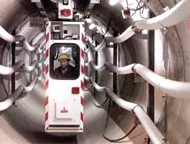 Bisher können zwei Tunnel-Abschnitte der Berliner 380-kV-Diagonalen mit einer Schwebebahn befahren werden, um die dort verlegten Kabel zu inspizieren. Foto: Bewag