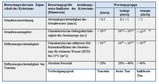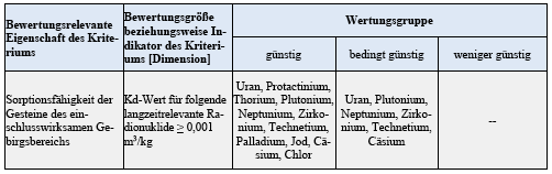 Kriterium zur Bewertung des Rückhaltevermögens im einschlusswirksamen Gebirgsbereich