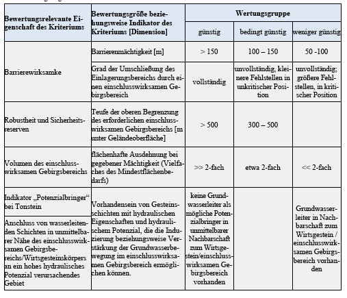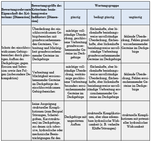 Kriterium zur Bewertung des Schutzes des einschlusswirksamen Gebirgsbereichs durch das Deckgebirge
