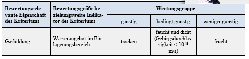 Kriterium zur Bewertung der günstigen gebirgsmechanischen Eigenschaften